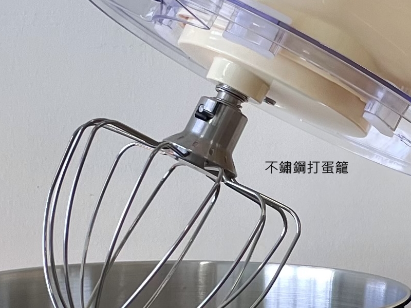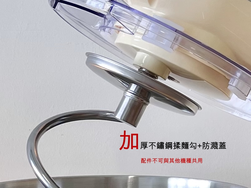. 產品配件 : 304不鏽鋼攪拌盆、揉麵勾、打蛋籠、攪拌槳、透明防噴蓋