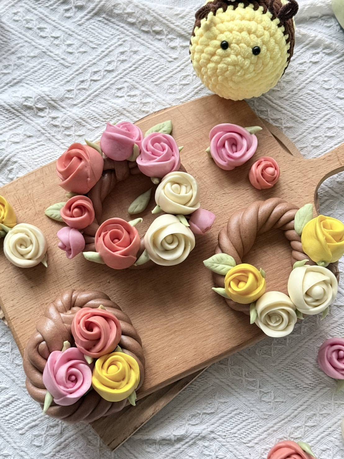 在這堂療癒的造型饅頭體驗課中,我們將以「玫瑰花圈」為主題,從一份麵粉開始,慢慢揉出一份可以傳遞心意的作品。透過雙手的溫度與細緻的塑形技巧,將麵糰化作一朵朵盛開的玫瑰,組成專屬於媽媽的幸福花圈禮物。