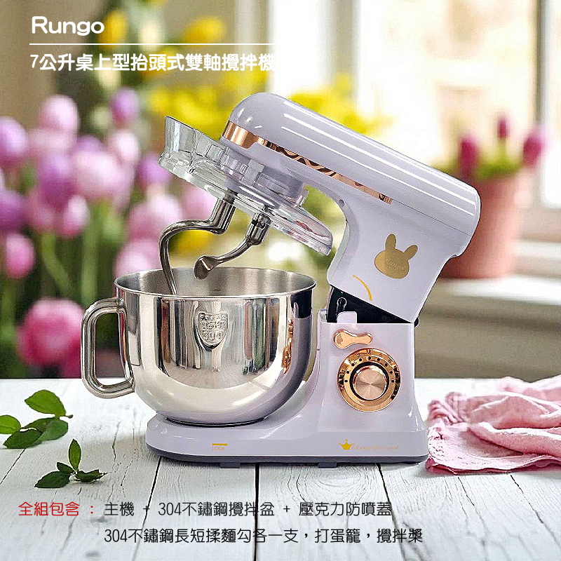 【Rungo】7L 雙揉麵鈎桌上型多功能抬頭式攪拌機|丙級證照練習/大製作量家庭專用