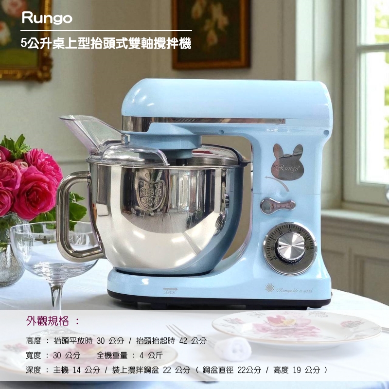 Rungo RX-700D-50D 5L 雙軸多功能抬頭式攪拌機 -冰晶藍